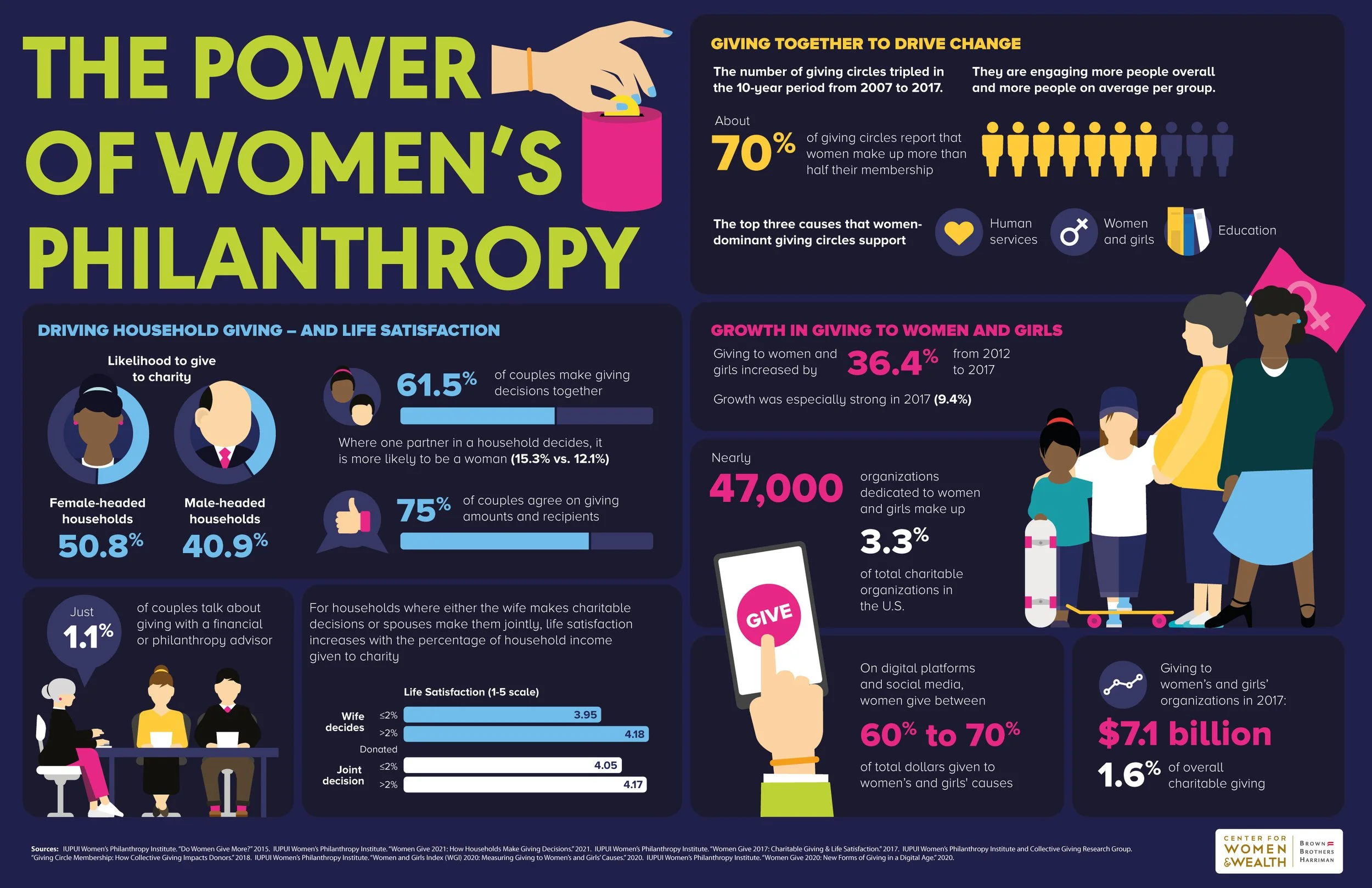 Infographic for BBH’s ‘Women in Wealth’ printed magazine illustrating the power of women’s philanthropy.
